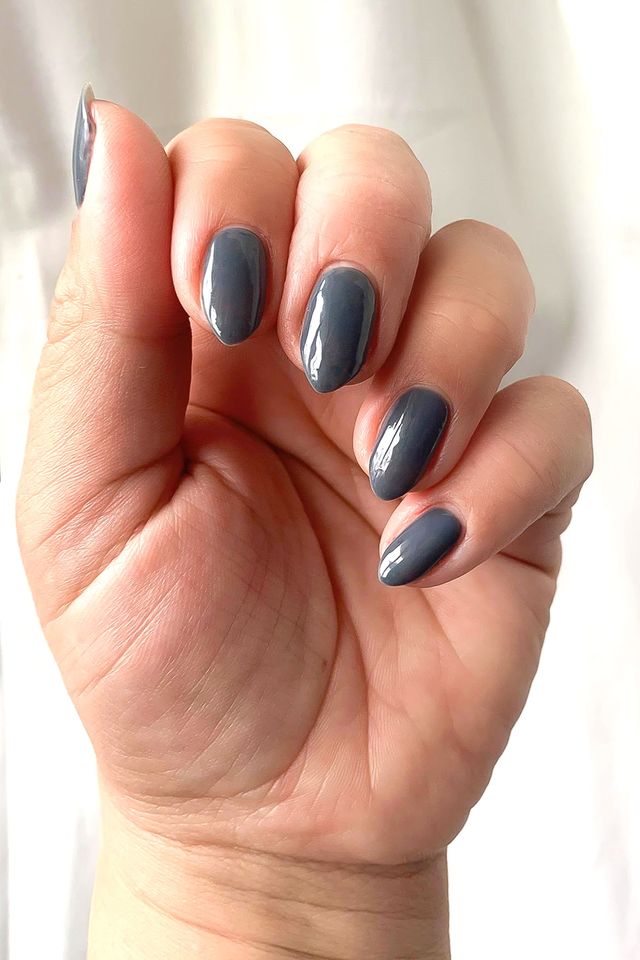Let the dark blue-grey of this polish be your sweet escape.